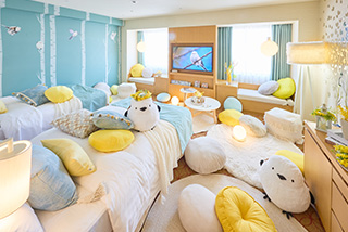 2026年5月1日~9月23日チェックイン分は、初夏の陽光を感じさせる明るいイエローを差し色に取り入れた、夏仕様のシマエナガルームでお迎えいたします。
