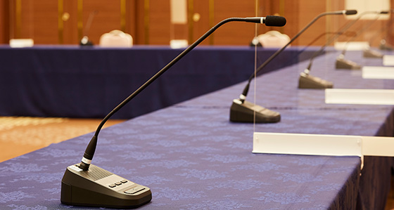 会議マイクシステムによりデジタル音声補正で会議中の声が聞き取りやすく、採決機能も内蔵。