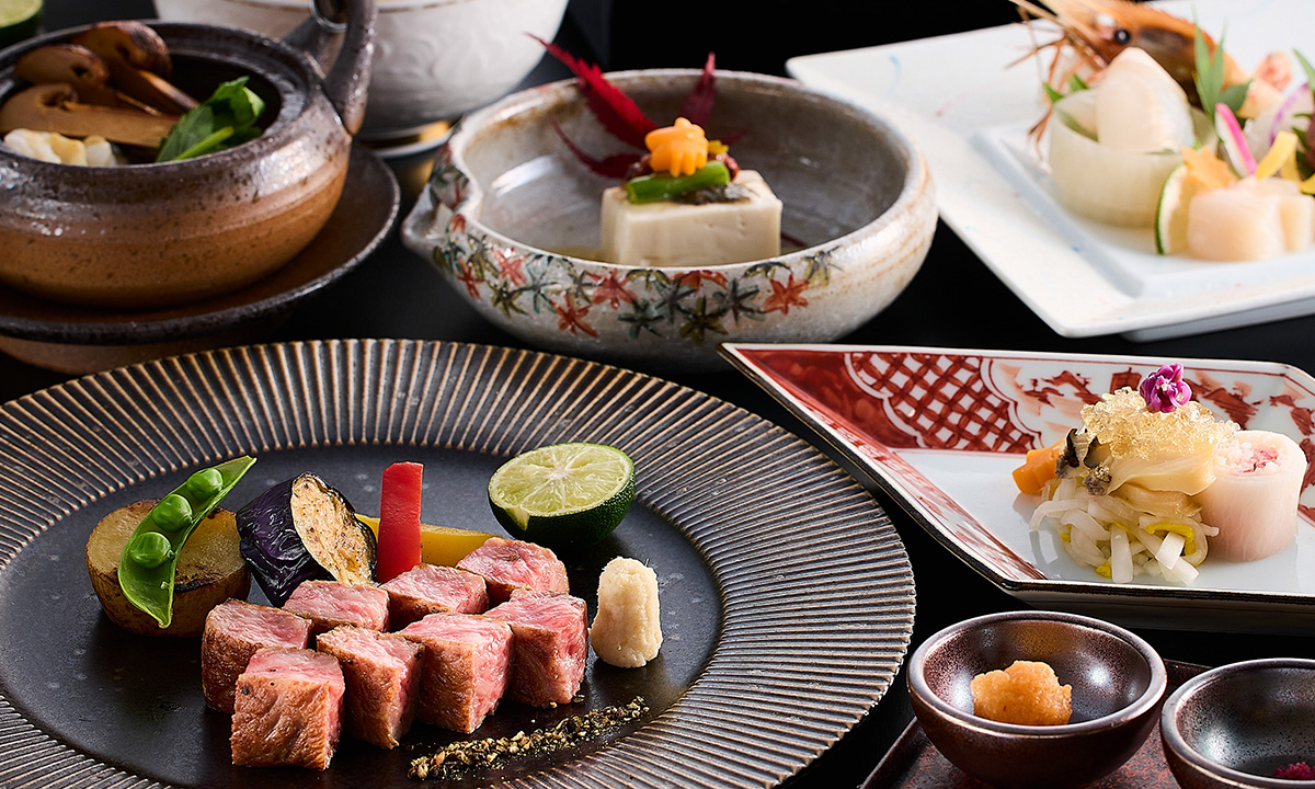 This kaiseki course meal lets you experience the meticulous craftsmanship of Japanese cuisine and the charm of seasonal ingredients. Dine on Hokkaido specialties like its Wagyu Steaks and Hanasaki Crab Dumplings. A wide selection of sake that pairs well with Japanese food is also available. We can provide a relaxing time in our spacious private rooms with a Japanese atmosphere and attentive hospitality from our staff dressed in kimonos.
