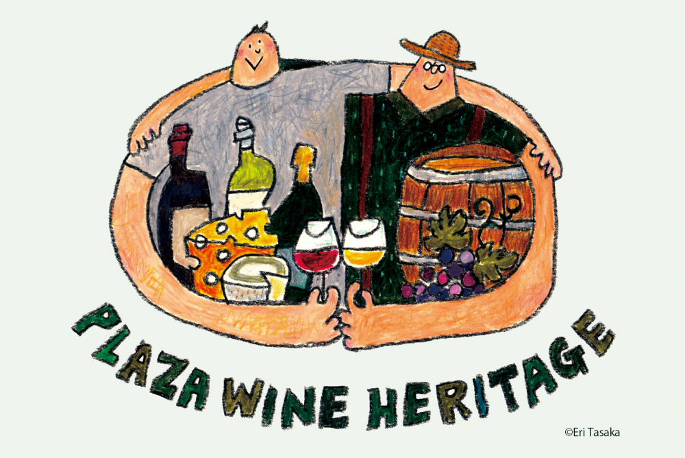 ワインとチーズを囲み、生産者様とお客様のあたたかなコミュニケーションが優しく感じられる、「プラザワインヘリテージ」のオリジナルロゴ。