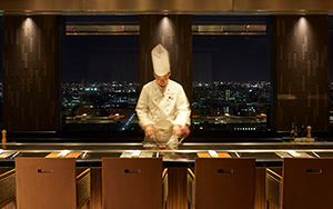 夜景とともに極上の素材を堪能する鉄板焼など、