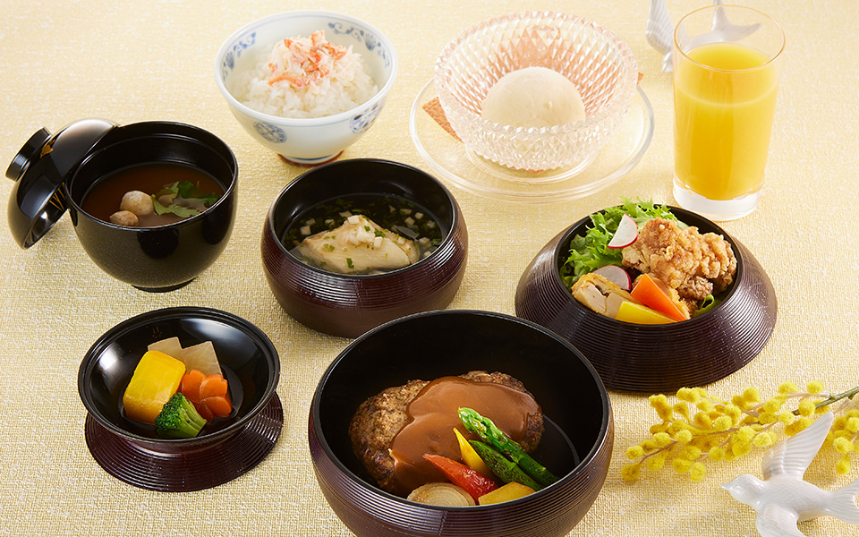 ハンバーグなど小さなお子様が喜ぶ料理の他、蟹御飯などお子様での食べられる本格和食のお膳。