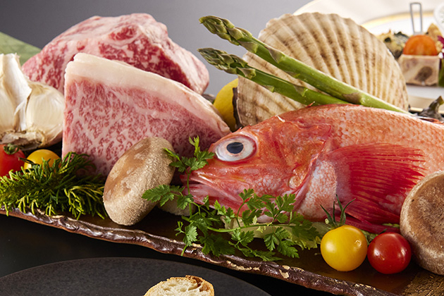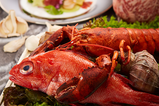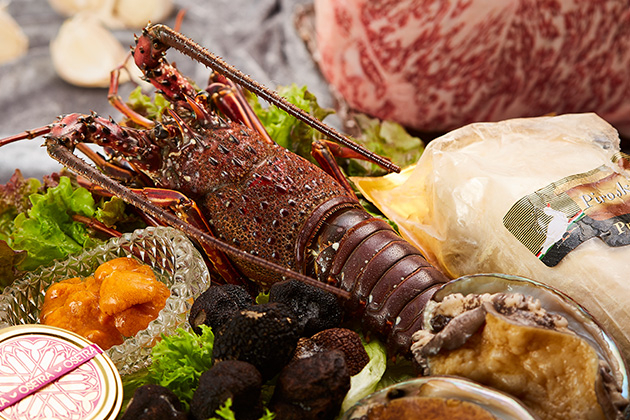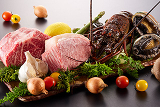 神戸牛をはじめ、北海道産黒毛和牛、活蝦夷鮑、タラバ蟹、フォアグラなど