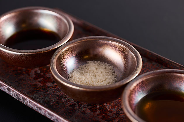 釜炊き一番塩に熊石産の2年生昆布エキスを加え、再結晶した藻塩。マイルドな昆布の旨味が肉の甘みを引き出します。