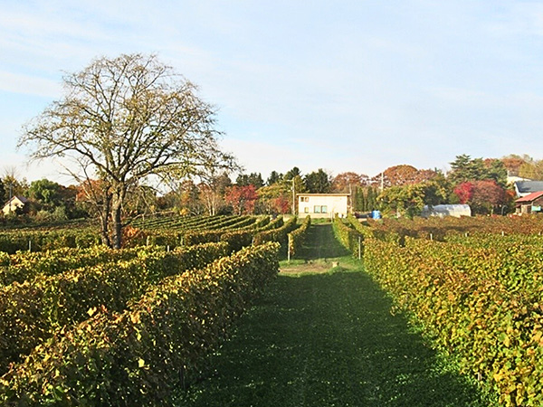 「かつてはリンゴ栽培で栄えた滝川市江部乙町で、いずれ観光資源となるような新しい産業を立ち上げたい」との思いからワイン造りに辿り着いた高橋さん。凍害・霜害・雪害など寒冷地特有の被害にも耐えながら、良いブドウをつくるため、家族3人で農作業に力を注いでいます。自然豊かな丘陵地帯で伸び伸びと生育したブドウが持つポテンシャルを活かし、ヴィンテージ毎に味を均すことなくその年の気候がダイレクトに味わいに反映されたワインを造っています。